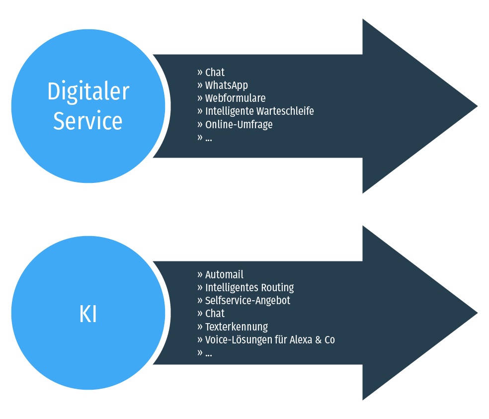 Wir verfügen über umfassendes Know-How im Bereich KI und Selfservice. Wir helfen Ihnen, Ihren Kundendialog um zeitgemäße Kanäle wie WhatsApp, Chat oder Social Media zu erweitern. Darüber hinaus beraten wir Sie dabei, ob und in welcher Form mittels KI Einsparungen und Optimierungen im Service denkbar und ratsam sind.